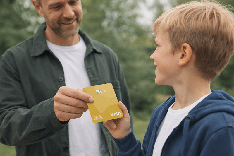 Snakk om trygg bruk fra start. Forklar barnet hvordan bankkortet fungerer, og hva det betyr å bruke penger på en bevisst måte.